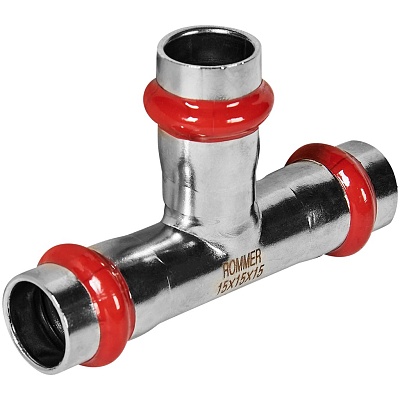 Тройник ROMMER равнопроходной ВПр, 35, из нержавеющей стали прессовой