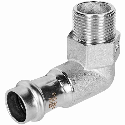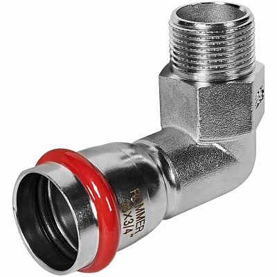 Угольник ROMMER-переходник-НР, 22х3/4, из нержавеющей стали прессовой