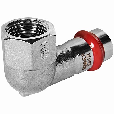 Угольник ROMMER-переходник-ВР, 18х1/2, из нержавеющей стали прессовой