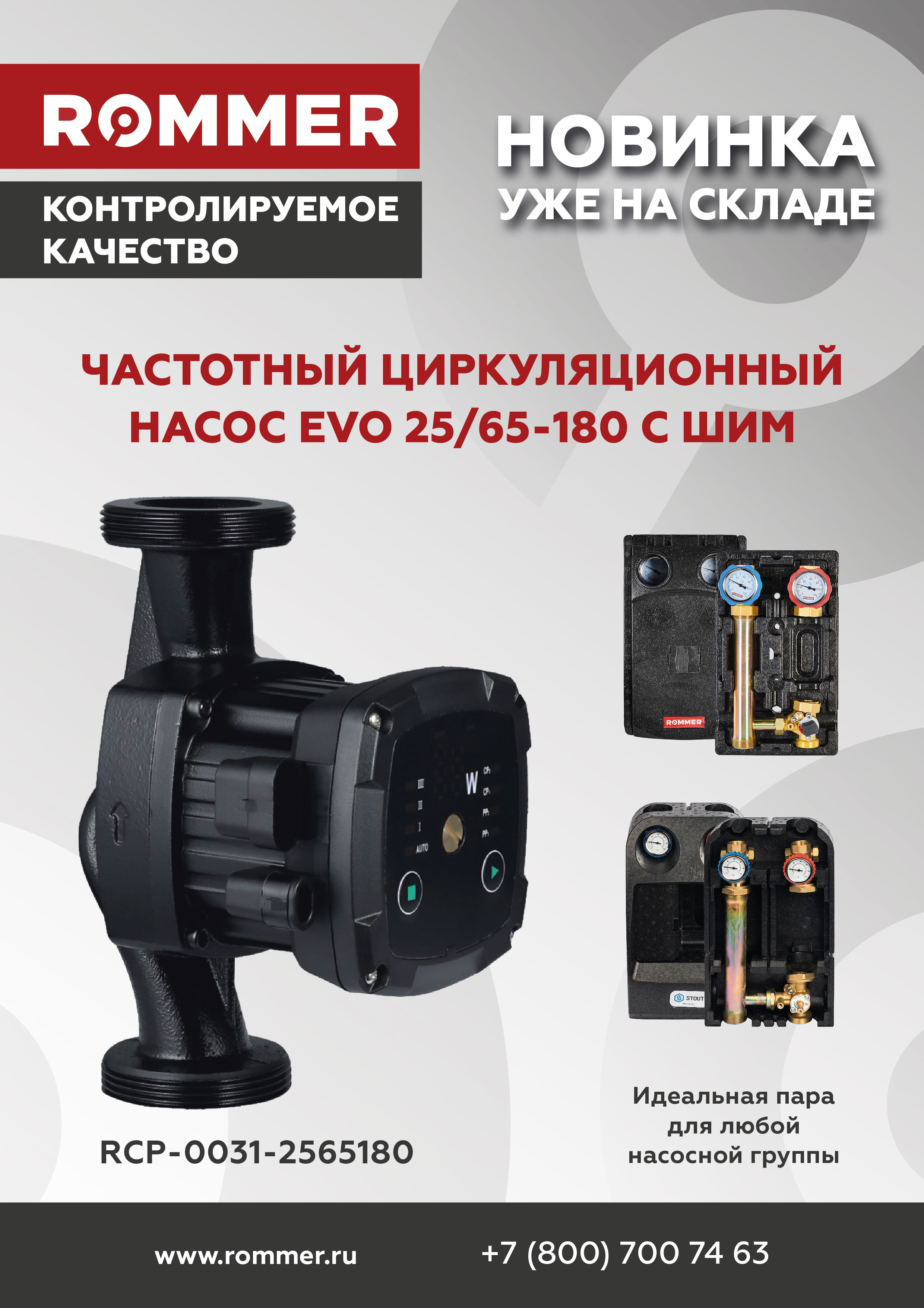Частотный циркуляционный насос ROMMER PROFI EVO 25/65-180 с ШИМ, без гаек