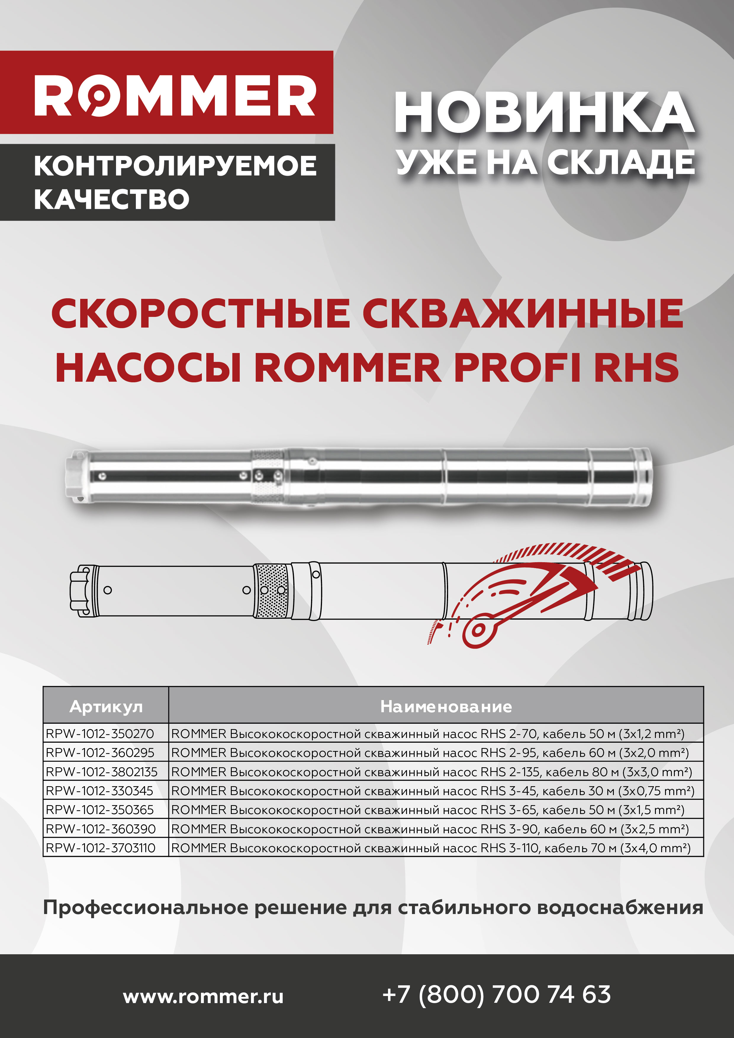 Высокоскоростной скважинный насоc ROMMER RHS 3-110, кабель 70 м (3x4,0 mm2)